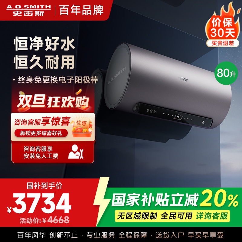 【史密斯(A.O.SMITH)】金圭世纪传承!以旧换新享受优惠,抢购AO史密斯佳尼特60升电热水器
