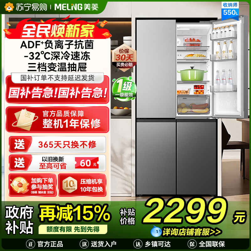 美菱收纳师冰箱550升十字对开四门家用新品大容量净味抗菌双变频一级能效风冷无霜节能补贴电冰箱BCD-550WSP9CX