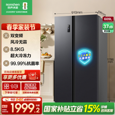 【对开门新品】609升净味率99%