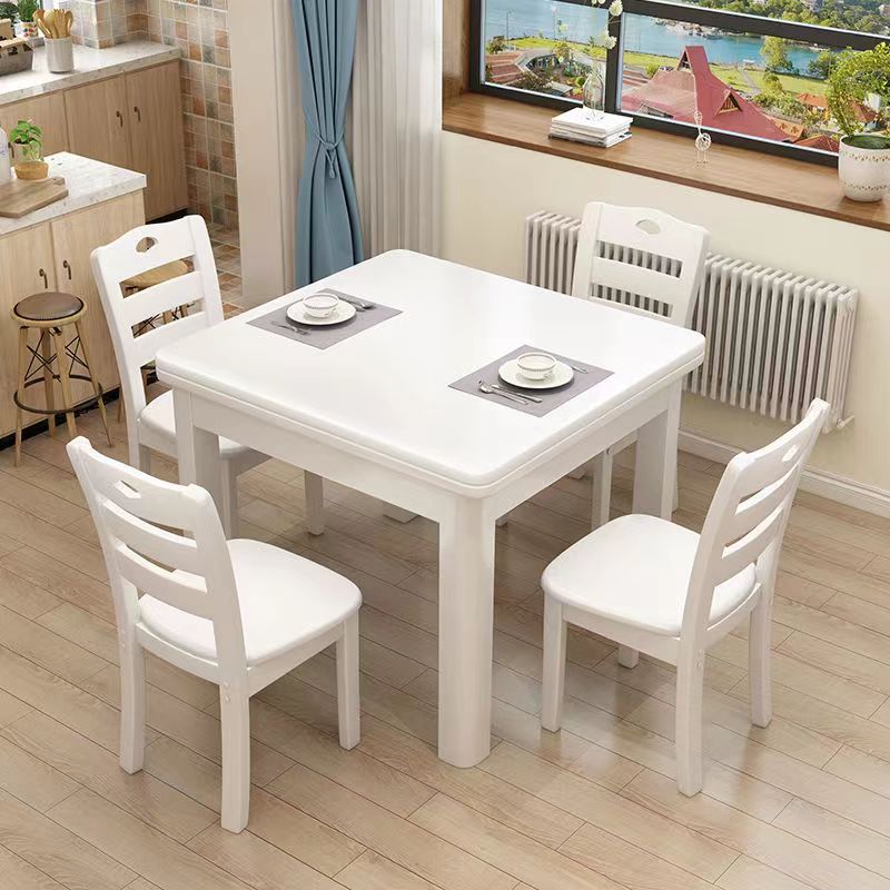 青木川 全实木餐桌四人纯实木餐桌椅组合套装 正方形家用客厅餐厅吃饭桌子小户型方桌八仙桌吃饭桌子出租房木质简约现代 白色 长宽90厘米【餐桌+两凳+4椅】