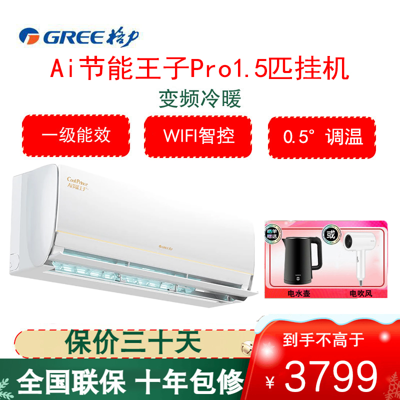 格力(GREE)空调KFR-35GW/NhLb1BAj Ai节能王子Pro 1.5匹变频 新1级能效 壁挂式冷暖空调