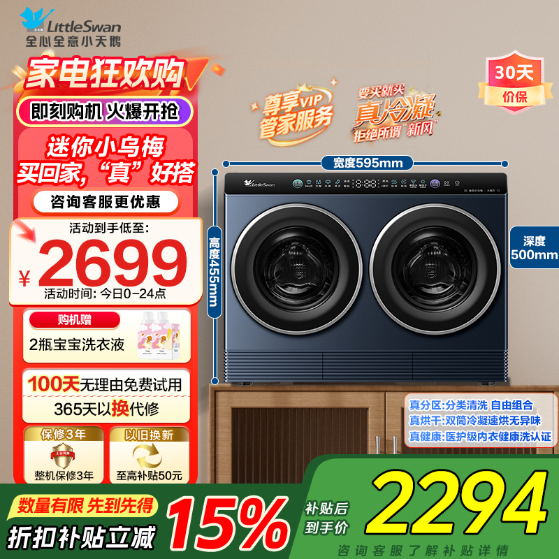 小天鹅LittleSwan双筒分区洗可组懒人三筒洗衣机可叠放[迷你小乌梅]洗烘一体内衣洗衣机TNDD20-08AIDE