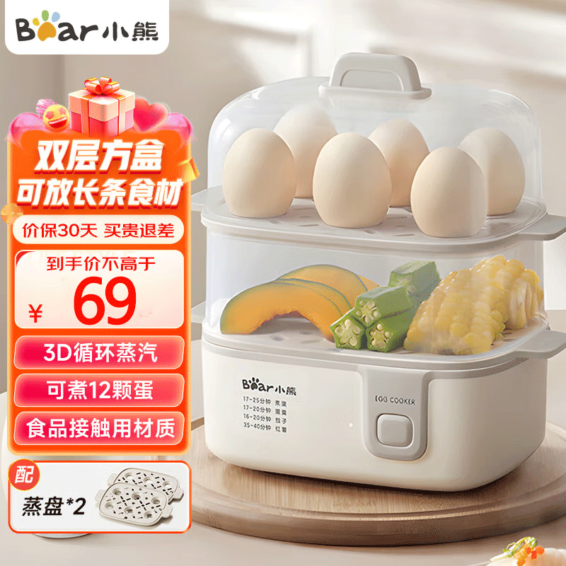 小熊(Bear)煮蛋器双层蒸蛋器蒸煮一体机家用早餐机迷你小型智能定时防干烧自动断电蒸锅蒸鸡蛋神器ZDQ-C14F3
