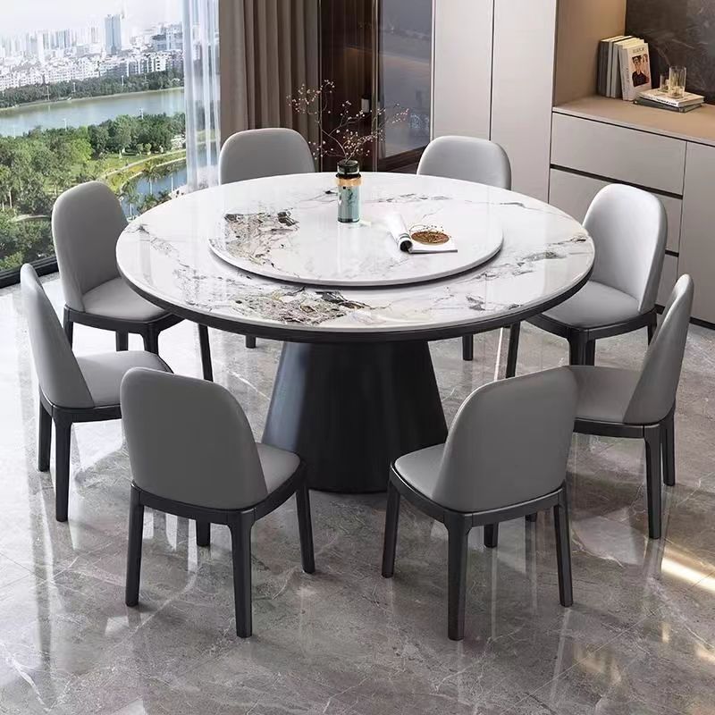 青木川 简约现代实木餐桌椅组合客厅餐厅家用小户型带转盘圆桌微晶石圆形吃饭桌子 1.6米圆桌+8张八角椅 黑檀色