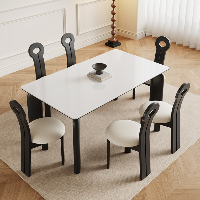 青木川 简约现代实木餐桌椅组合客厅餐厅家用岩板餐桌小户型多功能四人六人中古风吃饭桌子 雪上白岩板 1.6米长餐桌+六椅