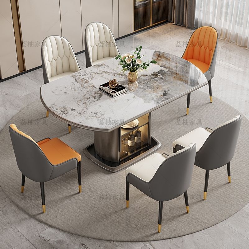 青木川 意式轻奢高级感实木餐桌椅组合套装客厅餐厅家用带收纳储物柜圆形可伸缩折叠小户型吃饭桌子圆桌简约现代 香奈儿 1.5米长餐桌+八椅