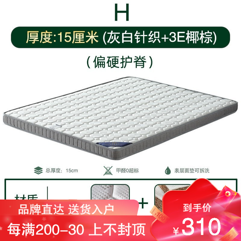 海马喜赢門床垫3E椰棕天然黄麻棕垫乳胶床垫经济型学生宿舍薄款棕榈软硬榻榻米折叠床垫子定制 15CM厚12分3E+3cm布料 800*1900