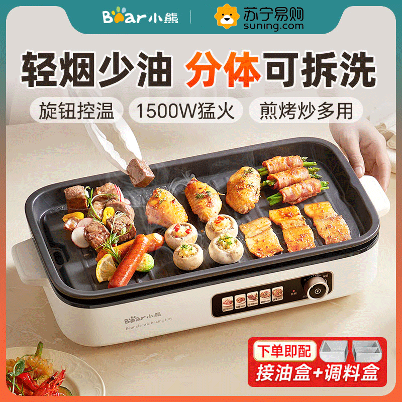 小熊(Bear)分体式烤肉锅 电烤盘 电烤炉烧烤家用多功能大功率大烤肉盘烤串机轻烟多段调温DKL-Y15C1