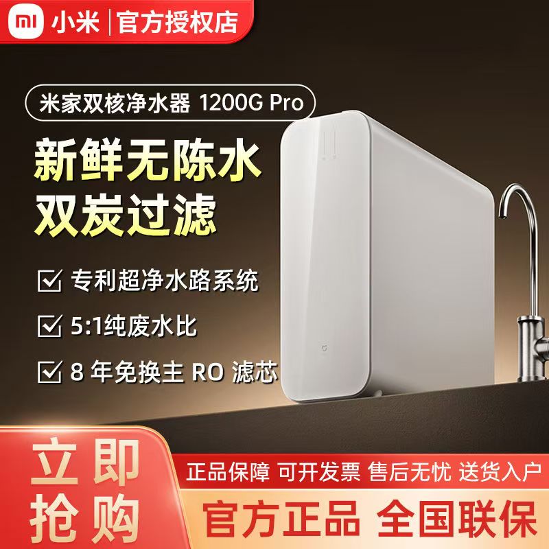 [24年旗舰款]米家小米双核1200G Pro 家用净水器 无罐厨下式直饮机 8年RO滤芯 5:1纯废水比3.2L/分