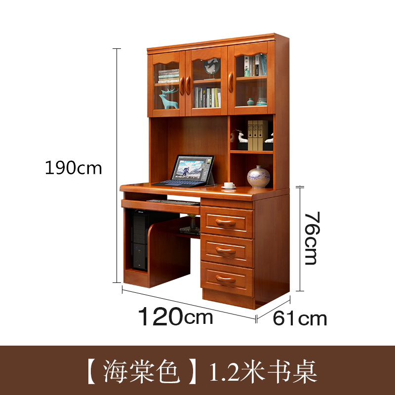 青木川 实木书桌书柜组合带书架卧室书房家用电脑桌1.4米办公桌成人学习桌1.2米高中初中学生写字桌子简约现代 1.2米书桌【海棠色】