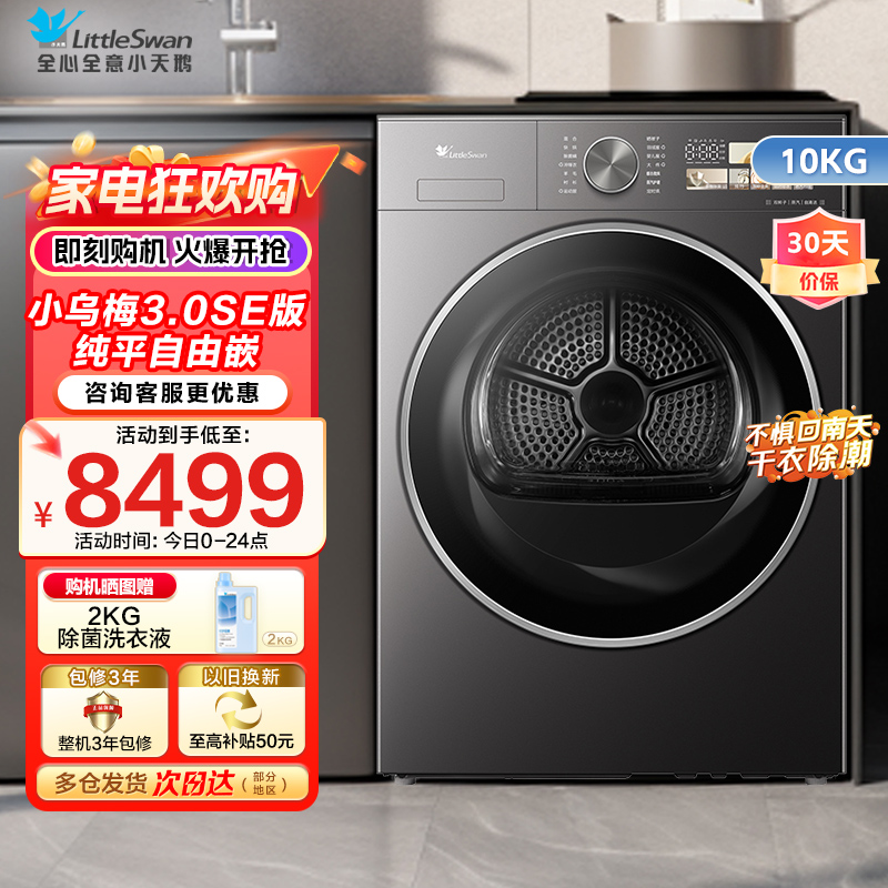 小天鹅10KG热泵烘干机 干衣机家用烘衣服 变频 双转子电机[小乌梅3.0驭风版]TH10VE40MAX