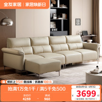 全友家居现代轻奢皮艺沙发客厅饱满座靠直排真皮沙发皮沙发