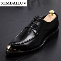 皮鞋男士秋季复古手抓纹正装商务男鞋尖头内增高潮男皮鞋SJ