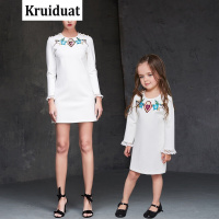 Kruidvat2017春款新款手工钉珠刺绣母女装连衣裙B092白色