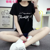 锦铭七玥2018夏季女士恤半袖韩版大码时尚打底衫字母女装恤短袖
