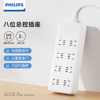 飞利浦(PHILIPS)新国标安全插排插座8位总控开关2米插板带儿童保护门新国标安全宿舍插线板/排插/接线板/拖线板