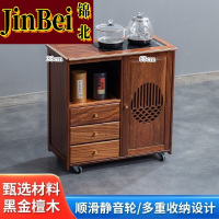 锦北木制移动茶水柜茶桌边柜泡茶台家用烧水壶一体边柜-三抽玻璃电器