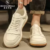 男生头层牛皮白色板鞋男款潮鞋真皮百搭复古擦色脏脏鞋厚底小白鞋