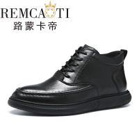 休闲鞋高帮男鞋冬季男士休闲鞋软底皮鞋男软面皮商务英伦休闲皮鞋黑色