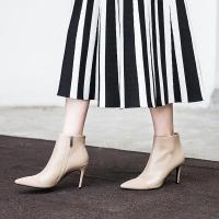 2017新款短靴女真皮尖头细跟裸靴性感百搭秋冬季高跟鞋加绒踝靴