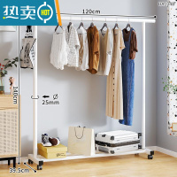 敬平卧室内简易晾衣架落地凉衣挂阳台顶加粗家用多功能收纳晾被子单杆 1.2米-白[升级特粗+带轮]
