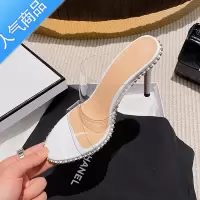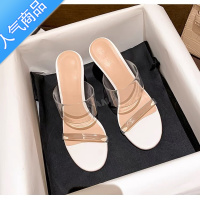 SUNTEK一字带透明凉鞋女2023年新款夏季白色高跟鞋细跟仙女风祼色凉拖鞋