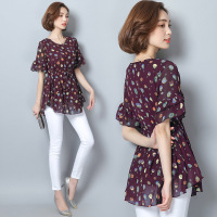 薇侣2017新品印花雪纺衫女短袖夏季新款上衣百搭修身荷叶边小衫