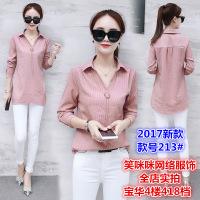 珂依舍2017秋装2017秋装新款女装长袖雪纺衫时尚宽松显瘦衬衣韩版中长款百塔小衫
