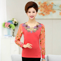 妈妈春装打底衫40-50岁2017新款中老年女装长袖雪纺衫中年女夏装XL(建议95-110斤)