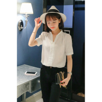 春夏新款韩版女装打底衫短袖学生职业OL雪纺衫V领白衬衫女