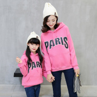 亲子装秋冬装卫衣加绒抓绒2017新款韩版连帽字母印花全棉母女外套