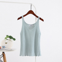 针织背心吊带衫春夏新款韩日百搭套头V领时尚潮人上衣女w浅蓝色均码