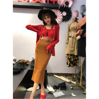 珂依舍2017秋装新款款韩版绑带吊带背心+针织开衫外套+包臀半身裙三件套女