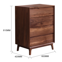 全简北美黑胡桃木极简风格斗柜 家用客厅储物柜 卧室精美收纳柜 四斗柜