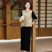 金丝绒洋气妈妈套装女时尚国风三件套中老年套装女春装新款衣服薄