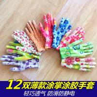 薄款尼龙花色PU手套涂掌浸胶防滑耐磨家务劳保手套防静电