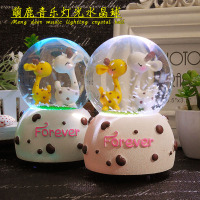 水晶球音乐盒八音盒女生儿童生日礼物流氓兔子灯光音乐雪花水晶球