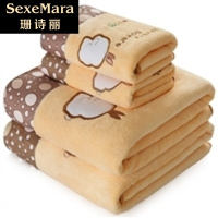 珊诗丽毛巾浴巾套装男女加大加厚儿童浴巾比纯棉超柔软吸水流氓兔咖色1浴巾+1毛巾