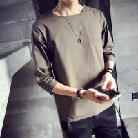2017新款春季新款七分袖T恤男修身韩版春秋衣服纯白色中袖体桖小衫男衣服