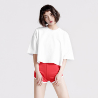 少女中袖纯白色宽松短款T恤BF港风学生高腰露脐上衣服