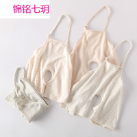 锦铭七玥云芽 新生婴儿肚兜有机彩棉连脚护肚围宝宝儿童纯棉网眼开裆裤薄