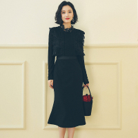 YIBUSHENG 高级性感女人味花朵印花网纱拼接中长吊带修身包臀连衣裙