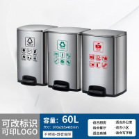 定制户外不锈钢分类脚踏垃圾桶收纳方形大容量带盖商用写字楼批发 60L 上开口三分类