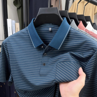 中老年爸爸装冰丝翻领polo衫男2026夏季新款条纹弹力透气男士T恤