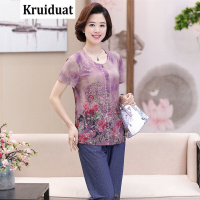 Kruidvat夏季真丝T恤+七分裤套装两件套妈妈079