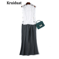 Kruidvat2017夏季新款镂空水溶荷叶边背心条纹七分裤套装喇叭裤CJ白色