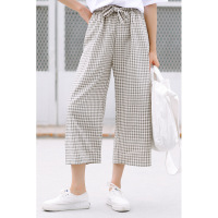 蜜妃儿夏装新款女百搭高腰蝴蝶结绑带格子休闲七分裤女阔腿裤