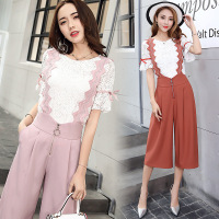 优雅韩版时尚修身显瘦甜美+七分裤2017年夏季套装/套裙