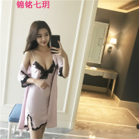 锦铭七玥带胸垫丝绸性感睡衣女夏诱惑夏天冰丝吊带睡裙两件套公主睡袍套装