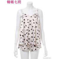 锦铭七玥2018早春新款日系豹纹冰淇淋缎面仿真丝吊带短裤长裤睡衣套装